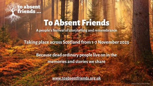 We’re taking part in To Absent Friends, a people’s festival of storytelling and remembrance, taking place across Scotland from 1-7 November. [Details of event]